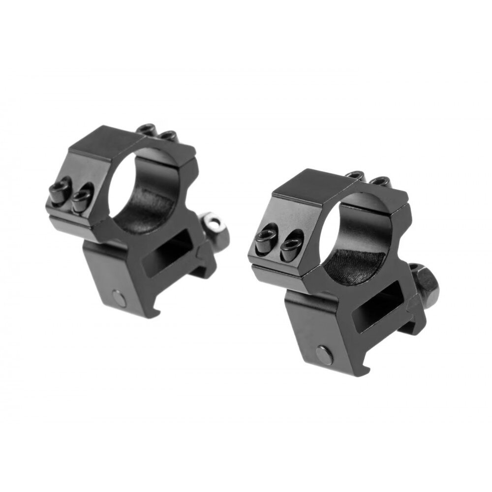 „Pirate Arms 25.4mm High Type Mount Rings” sunt inele metalice pentru montarea lunetelor pe pușcă, proiectate pentru a se prinde pe o șină standard 22 mm RIS / Picatinny / Weaver.
