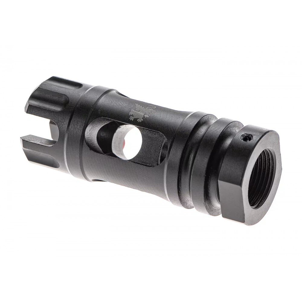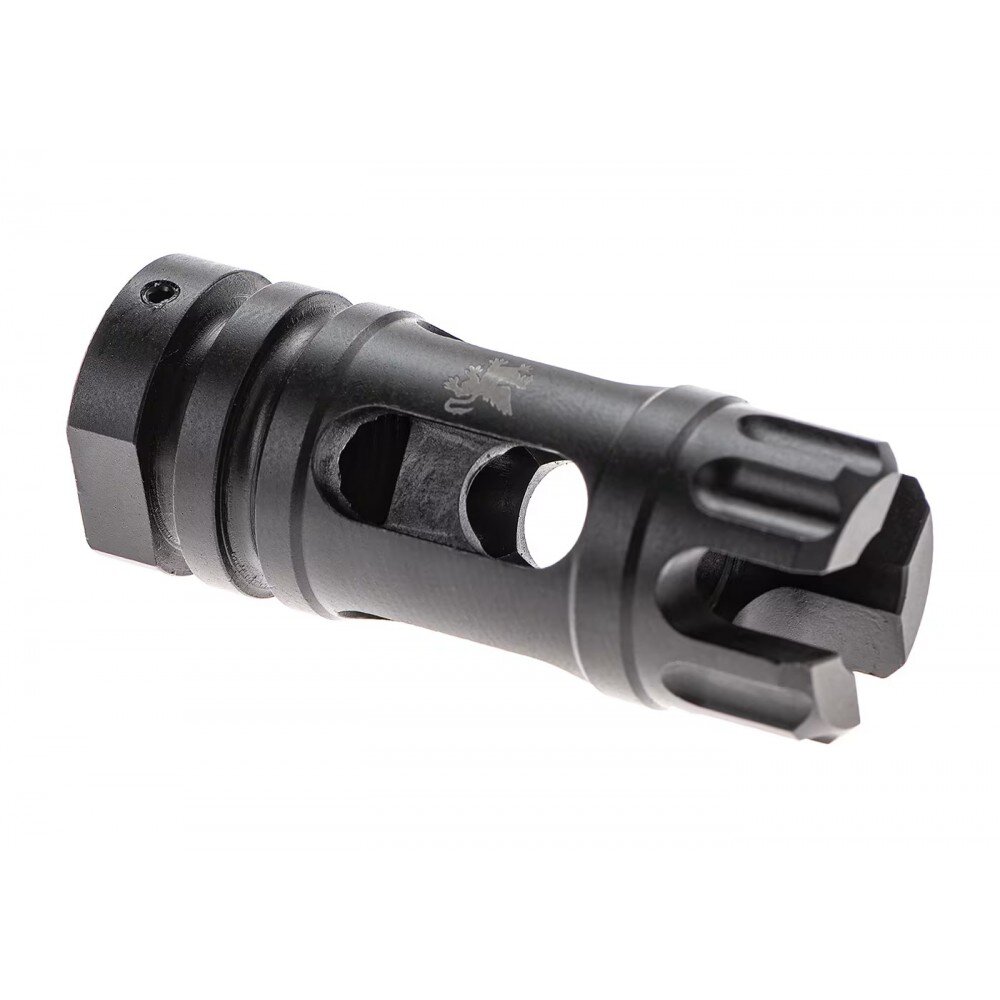 The Griffin Armament M4SD Flash Comp (not to be confused with the M4SDII Flash Comp) optimally combines the design of the Muzzle Brake with the flash suppressing prongs of the original M4SDII Flash Comp.
