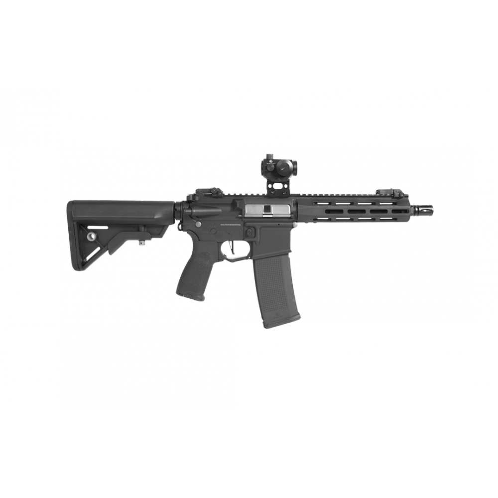 La struttura è realizzata in Carbontech™, un polimero ingegnerizzato estremamente resistente ma leggero che offre la massima resistenza senza compromettere la maneggevolezza. Ogni dettaglio, dalle finiture precise e dalle marcature laser ai punti di attacco per l'imbracatura tattica e ai cannocchiali flip-up integrati, riflette l'attenzione alla qualità. L'ergonomia dell'impugnatura e dell'astina riprogettate garantisce un comfort eccellente, mentre l'accesso rapido e senza attrezzi al vano motore e al guidamolla consente una manutenzione e un aggiornamento rapidi.