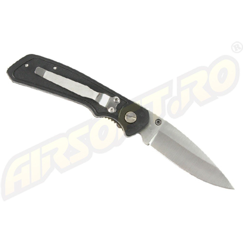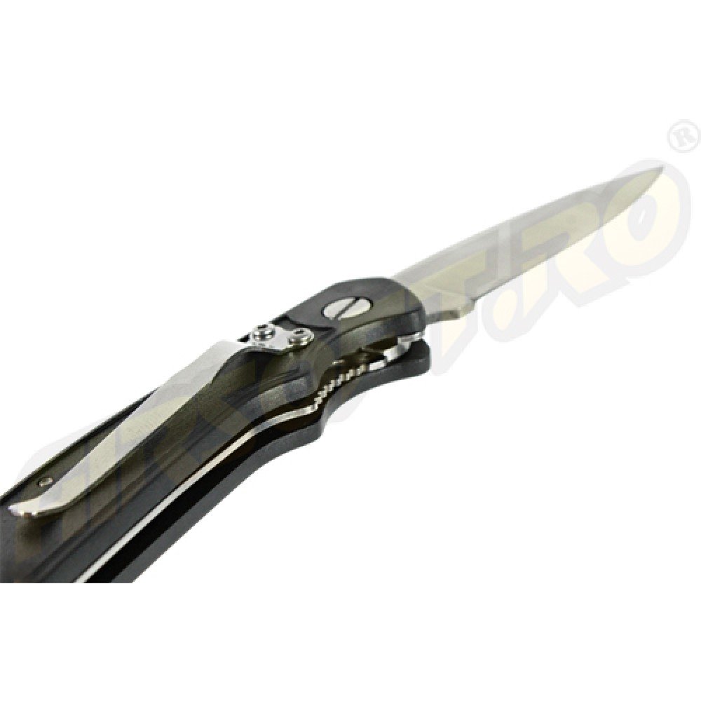 Knife with clip. The knife is fitted with automated blade locking system, and unlocking is done easily by actioning the anterior part of the handle.